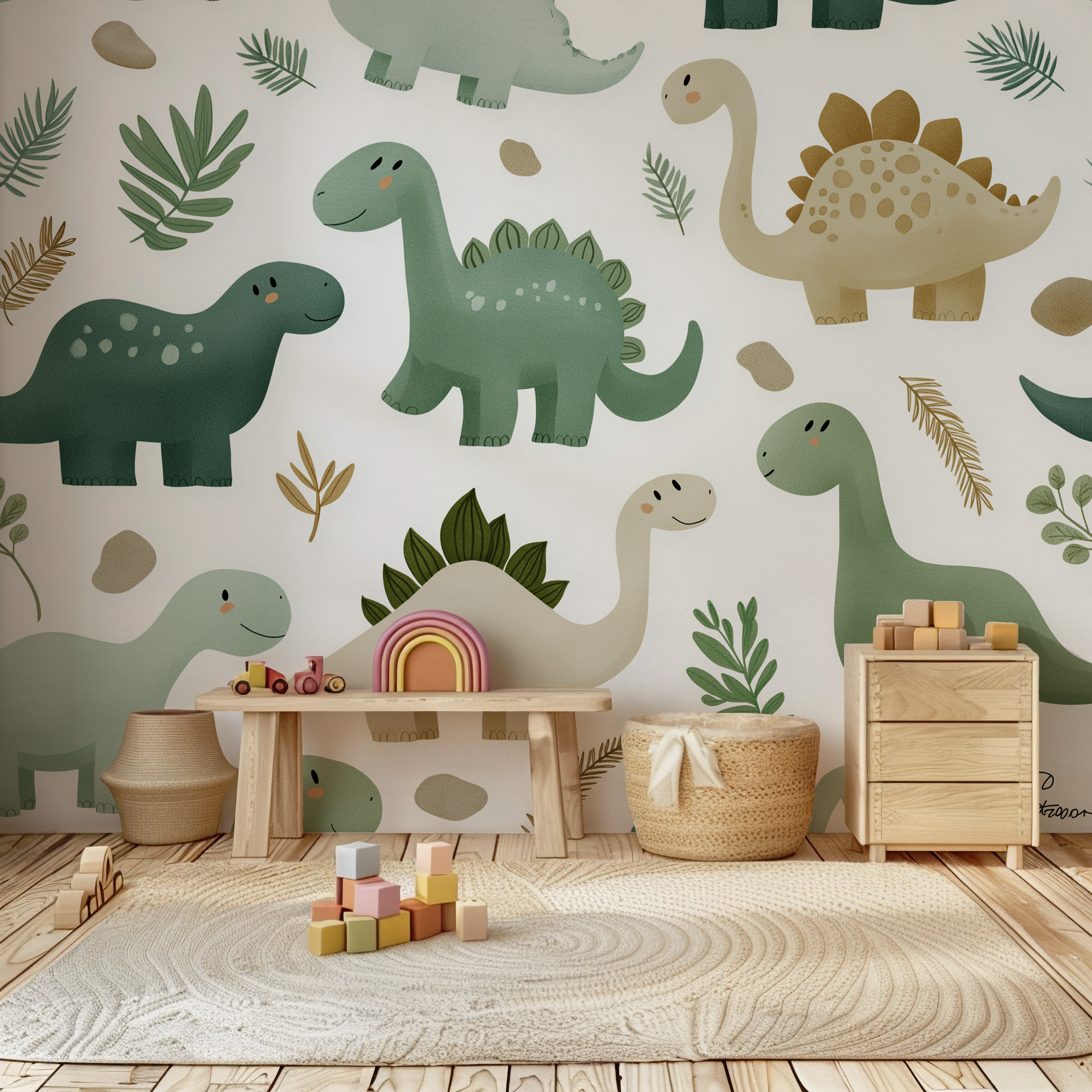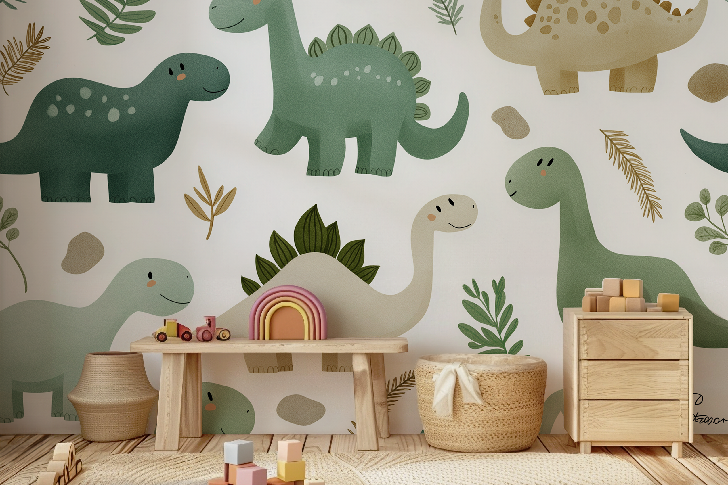 Vytvorte vo svojej detskej izbe kúzelný praveký svet s našimi roztomilými dinosaurími nálepkami na stenu. Dizajn je jemný, moderný a ladený do prírodných farieb, takže sa perfektne hodí do každého interiéru – od škandinávskeho štýlu až po hravú detskú izbičku.